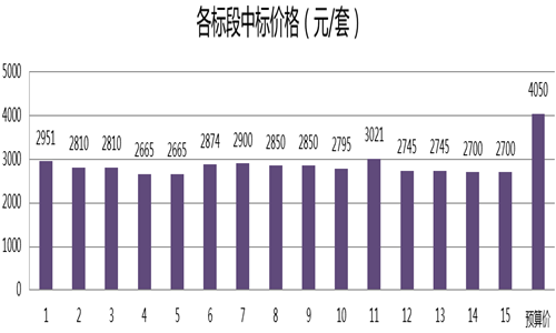 僅以第5標(biāo)段為例,該標(biāo)段一共有15家企業(yè)參與競(jìng)標(biāo),平均競(jìng)標(biāo)價(jià)為3370元/套。而遼寧太陽(yáng)能研究應(yīng)用有限公司以2665元/套中標(biāo),低于平均價(jià)近705元/套,價(jià)格偏離平均值高達(dá)21%。