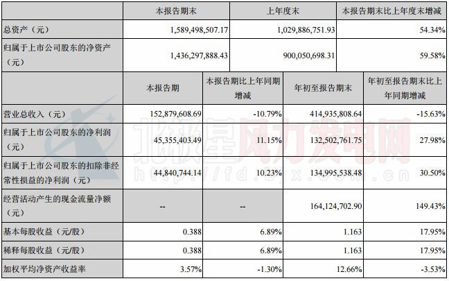 中國(guó)儲(chǔ)能網(wǎng)訊:金雷風(fēng)電近日發(fā)布2016年第三季度報(bào)告。報(bào)告稱,金雷風(fēng)電第三季度實(shí)現(xiàn)營(yíng)業(yè)收入1.53億元,同比下降10.79%;實(shí)現(xiàn)凈利潤(rùn)4534.54萬(wàn)元,同比增長(zhǎng)11.15%;前三季度實(shí)現(xiàn)營(yíng)業(yè)總收入4.15億元,同比下降15.63%;實(shí)現(xiàn)凈利潤(rùn)1.33億元,同比增長(zhǎng)27.98%。