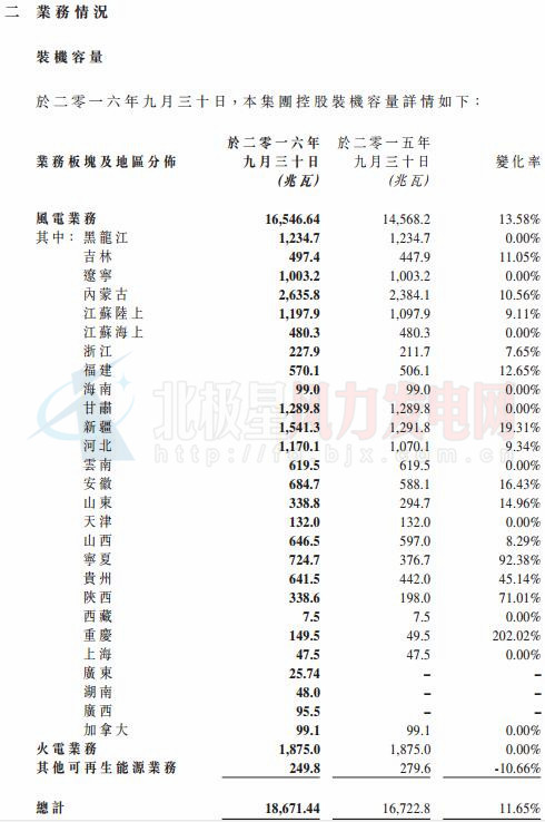 中國儲能網(wǎng)訊:龍源電力近日發(fā)布2016年前三季度業(yè)績公告。公告稱龍源電力前三季度實現(xiàn)收入156.32億元,同比增長7.19%,其中風(fēng)電收入達到97.15億元,同比增長8.28%。龍源電力前三季度完成發(fā)電量28,995,351兆瓦時(約289.95億千瓦),同比增長8.98%,其中風(fēng)電發(fā)電量21.091,689兆瓦時(約211.00億千瓦時),同比增長11.71%。