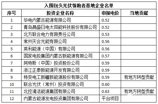 9月25日,包頭市人民政府發(fā)布《內(nèi)蒙古包頭市采煤沉陷區(qū)國家先進(jìn)技術(shù)光伏發(fā)電示范基地2016年項(xiàng)目投資商公示》,12家企業(yè)入圍包頭市采煤沉陷區(qū)國家先進(jìn)技術(shù)光伏示范基地2016年項(xiàng)目投資商,華電、青島昌盛以0.52元的報(bào)價(jià)創(chuàng)業(yè)內(nèi)新低,多家公司在0.5元到0.6元之間大幅殺價(jià)。