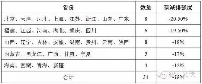 根據(jù)“控制溫室氣體方案”,國(guó)家對(duì)不同省份下達(dá)了不同的減排約束指標(biāo),具體如下表所示。