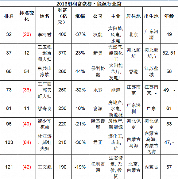 涉及到能源行業(yè),也是生產(chǎn)大富豪的高產(chǎn)區(qū)。榜單顯示,能源行業(yè)共有81位企業(yè)家榮登榜單: