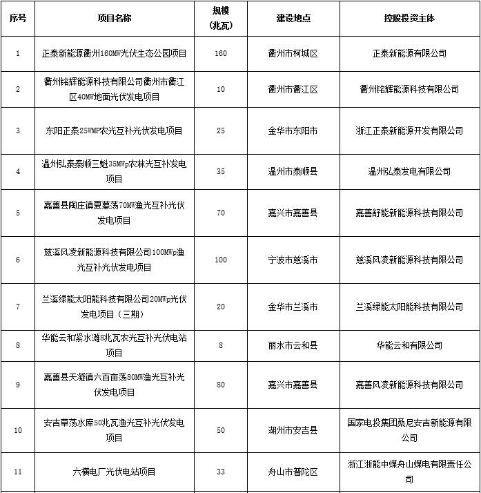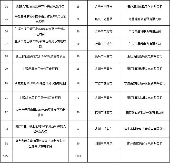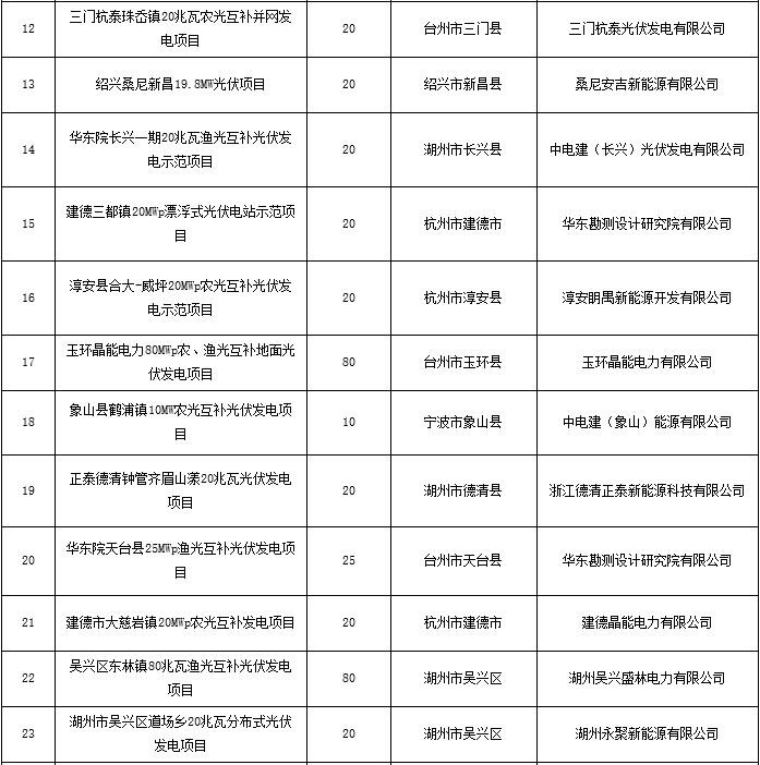 浙江省2016年度普通地面光伏電站建設規(guī)模內項目名單