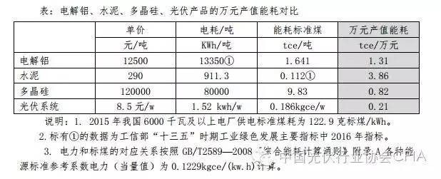 如果將光伏系統(tǒng)作為一個(gè)產(chǎn)品,按2015年光伏系統(tǒng)投資約為8.5元/瓦,每瓦耗電量約為1.52度,根據(jù)GB/T2589—2008《綜合能耗計(jì)算通則》各種能源標(biāo)準(zhǔn)參考系數(shù)電力(當(dāng)量值)為0.1229kgce/(kw.h),即一度電折算0.1229kgce千克標(biāo)煤計(jì)算,1.52度電折合0.186kgce,即光伏行業(yè)的萬(wàn)元產(chǎn)值能耗約為0.21噸標(biāo)準(zhǔn)煤,而2015年我國(guó)能源消費(fèi)總量43.0億噸標(biāo)準(zhǔn)煤,國(guó)內(nèi)生產(chǎn)總值為676708億元,即2015年全國(guó)萬(wàn)元GDP能耗平均為0.635噸標(biāo)準(zhǔn)煤,光伏萬(wàn)元產(chǎn)值能耗比全國(guó)平均萬(wàn)元GDP能耗低約67%,因此光伏行業(yè)所謂的“高能耗”說法是站不住腳的。