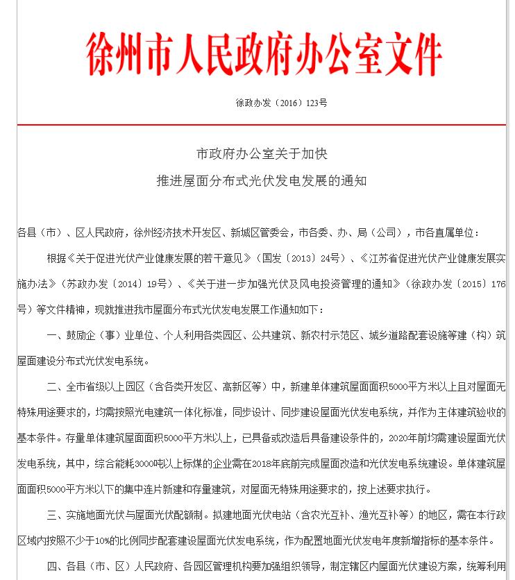 不管怎樣,這個(gè)文件通知的發(fā)布,給光伏人在徐州市推廣光伏提供了一個(gè)支持性文件,一定程度上促進(jìn)了光伏分布式在徐州市的發(fā)展!!