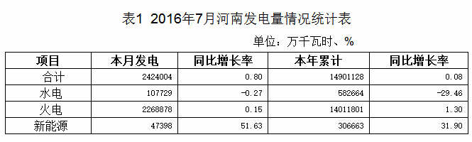 (一)發(fā)電量情況。7月份當月,全省發(fā)電量242.4億千瓦時,同比增長0.80%。其中水電10.77億千瓦時,同比減少0.27%;火電226.89億千瓦時,同比增長0.15%;新能源4.74億千瓦時,同比增長51.63%。