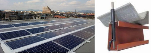 無螺栓陸屋頂架臺(左),大波浪石棉瓦用架臺(右)(攝影:韓華Q-Cells日本)