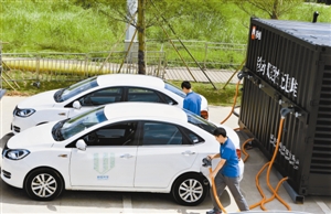 中國儲能網(wǎng)訊:昨日,國內(nèi)首臺移動式電動汽車充電站亮相深圳國際低碳城論壇。該電動汽車充電站可稱為一個(gè)可移動的電動汽車充電站,主要特點(diǎn)是:按需分配充電功率,兼容各種不同充電功率的電動車。同時(shí)可為8臺電動車充電。該充電站的亮相,無疑是為深圳低碳城市建設(shè)增磚添瓦。該充電站由深圳奧特迅電力設(shè)備股份有限公司研發(fā),移動式柔性充電堆生產(chǎn)技術(shù)是國內(nèi)首創(chuàng),環(huán)保、低碳、節(jié)能、安全。學(xué)稱“移動充電堆”。