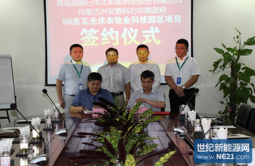 中國(guó)儲(chǔ)能網(wǎng)訊:8月17日,青島昌盛日電太陽(yáng)能科技股份有限公司與內(nèi)蒙古自治區(qū)興安盟科爾沁右翼中旗簽約50MW光伏現(xiàn)代農(nóng)牧業(yè)產(chǎn)業(yè)園區(qū)項(xiàng)目。青島昌盛日電太陽(yáng)能公司董事申劍飛與內(nèi)蒙古興安盟科爾沁右翼中旗旗長(zhǎng)郭堂分別代表昌盛日電、科爾沁右翼中旗政府簽署了項(xiàng)目投資開發(fā)協(xié)議。