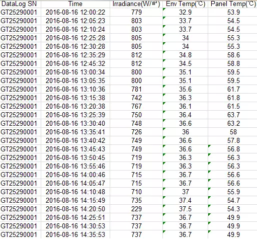 后臺(tái)實(shí)時(shí)監(jiān)測(cè)電站環(huán)境溫度和背板溫度數(shù)據(jù)表