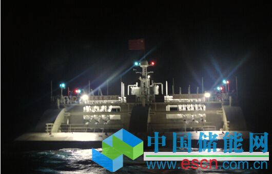 鷹式波浪能發(fā)電裝置“萬山號”夜間發(fā)電進行中