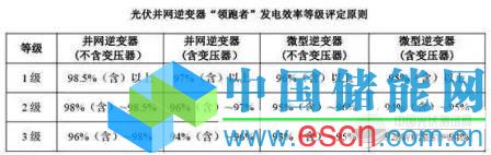 光伏并網逆變器“領跑者”認證中的效率認證是根據逆變器平均加權總效率測試值確定其對應的效率等級,其中1級為最高,3級最低,2級為達到“領跑者”水平,即2級以上為“領跑者”先進技術產品。由于目前光伏電站建設主要采用的是晶硅組件,因此平均加權總效率的評級是基于晶硅特性曲線測試下的數據,相關對應等級的平均加權總效率要求情況如下所示: