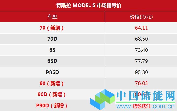 中國儲能網(wǎng)訊:日前從官方獲悉,特斯拉為了滿足不同消費者的需求,于近日再次推出了四款車型,包括最入門的Model S 70車型,以及包括90、P90以及P90D在內(nèi)的三款90車型。新車市場指導(dǎo)價64.11-97.93萬元。
