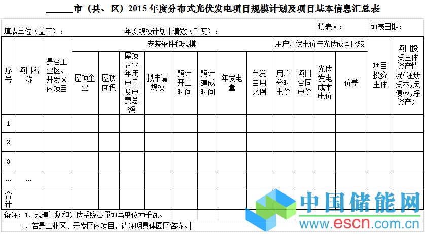 請各地發(fā)展改革部門按要求填報附件3和附件4,并于12月5日前將正式文件和電子版上報我委。我委將匯總后向國家能源局申請2015年全省規(guī)模指標(biāo),并根據(jù)國家下達確定的規(guī)模指標(biāo)分解到各地區(qū)。各地發(fā)展改革部門要在下達的規(guī)模指標(biāo)內(nèi)備案分布式光伏發(fā)電項目。