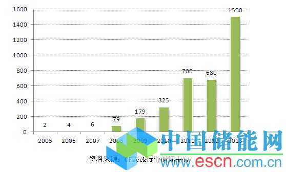 圖表:2005-2013年全球薄膜太陽能電池產(chǎn)量(單位:MW)