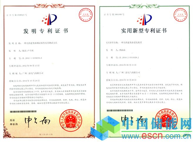 中國儲能網(wǎng)訊:10月29日,三晶電氣光伏逆變器再次喜獲中華人民共和國國家知識產(chǎn)權(quán)局頒發(fā)的兩項專利,分別為: