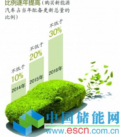 稍后,國家機(jī)關(guān)事務(wù)管理局、財(cái)政部等聯(lián)合公布《政府機(jī)關(guān)及公共機(jī)構(gòu)購買新能源汽車實(shí)施方案》,要求2014年中央國家機(jī)關(guān)以及納入新能源汽車推廣試點(diǎn)城市的政府機(jī)關(guān)和公共機(jī)構(gòu),購買的新能源汽車占當(dāng)年配備更新總量的比例不低于10%,2015年不低于20%,2016年不低于30%,以后逐年提高。