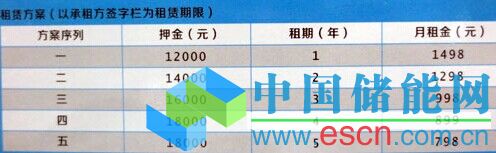 記者在該公司的租賃方案上看到,租賃方案共有5套,以年度為單位遞增,租賃時(shí)間越長(zhǎng)需交納的押金越多,但月租金越少。