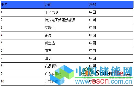 表:2013年中國(guó)市場(chǎng)十大光伏逆變器供應(yīng)商排名(來(lái)源:IHS)