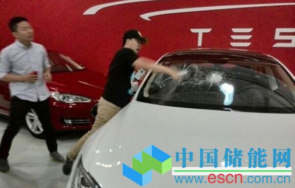于鑫泉早已沒有了當(dāng)初的興奮。從特斯拉銷售人員手中接過車鑰匙之后,他迅速打開車前蓋,拿出做牽引車輛用的黑色鉤子,向嶄新的特斯拉Model S擋風(fēng)玻璃狠狠地砸了下去。現(xiàn)場所有人都愣住了。