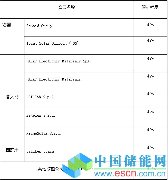 根據《反傾銷條例》的有關規(guī)定,調查機關向國務院關稅稅則委員會提出對原產于歐盟的進口太陽能級多晶硅征收反傾銷稅的建議。國務院關稅稅則委員會根據調查機關的建議作出決定,自2014年5月1日起,對原產于歐盟的進口太陽能級多晶硅征收反傾銷稅。對各公司征收的反傾銷稅稅率如下: