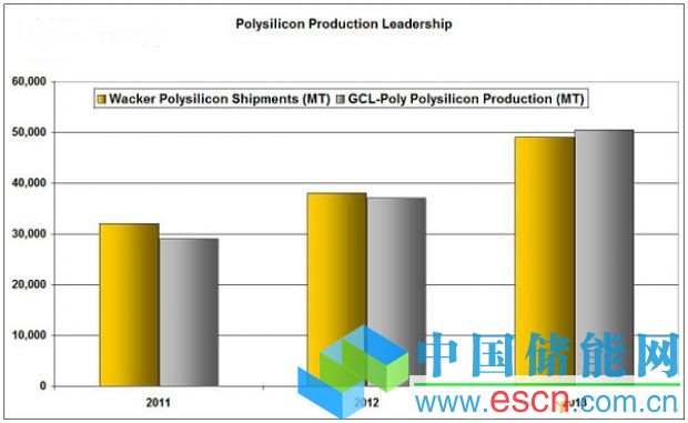中國儲能網(wǎng)訊:盡管保利協(xié)鑫(GCL-Poly)多年來一直在多晶硅額定產(chǎn)量排名中榮登榜首,但是其實際上生產(chǎn)的多晶硅比其最接近的競爭對手瓦克化學(xué)(Wacker Chemie)少。然而,該中國生產(chǎn)商似乎在2013年首次被其德國競爭對手打擊。