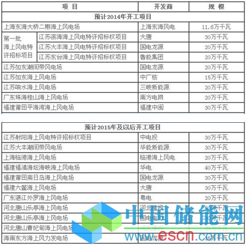 2014年起中國海上風(fēng)電開工項(xiàng)目匯總