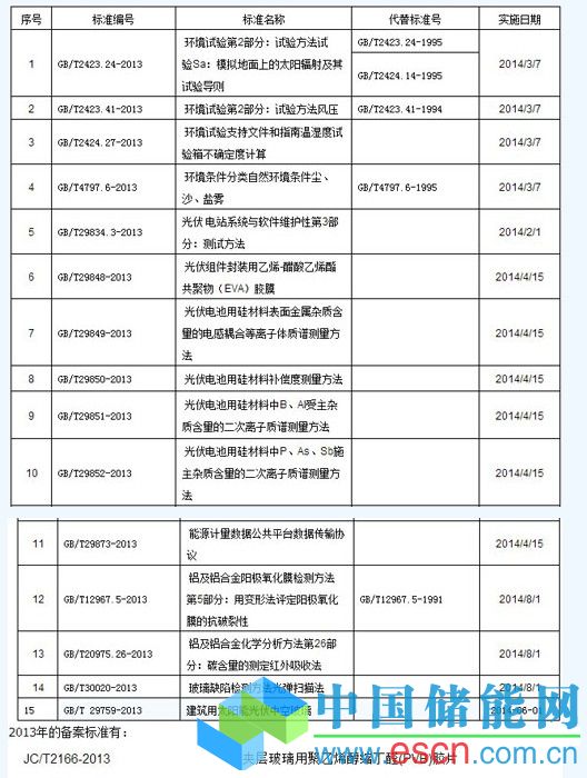 中國儲能網(wǎng)訊:國家質(zhì)量監(jiān)督檢驗檢疫總局、國家標(biāo)準(zhǔn)化管理委員會發(fā)布2013年光伏行業(yè)新通過的國家標(biāo)準(zhǔn)及備案的國家標(biāo)準(zhǔn)。