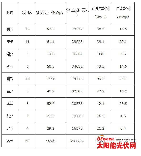 2009年以來,在省內(nèi)沒有配套扶持政策的情況下,經(jīng)省財政廳、省發(fā)改委(能源局)努力爭取,我省在杭州、寧波等9個地區(qū)共推動了70個國家金太陽光伏發(fā)電示范項目建設。項目總?cè)萘?6萬千瓦,占全省光伏發(fā)電規(guī)模的近90%,獲得國家資金補助29.2億元,補助容量和資金總額居全國第二,極大地推動了我省光伏應用和光伏企業(yè)的發(fā)展。