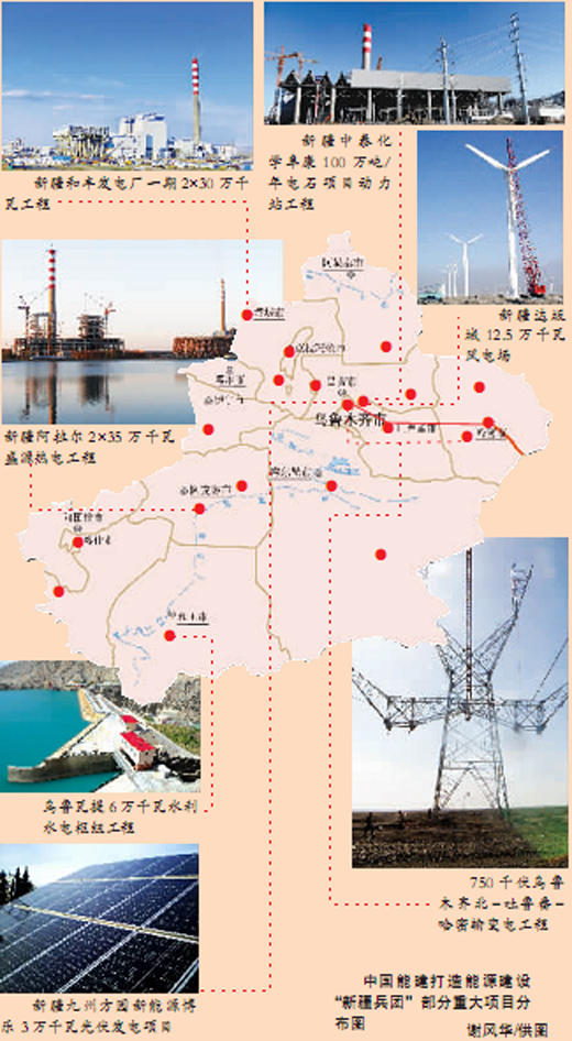 據(jù)不完全統(tǒng)計(jì),截至2012年8月,中國能建在新疆共簽訂投資協(xié)議約165億元,已完成投資近60億元,今年就完成投資近9億元;中國能建旗下近30家企業(yè),簽訂承建項(xiàng)目合同總金額約275億元,已完成合同金額約56億元,涉及水利水電、火電、風(fēng)電、太陽能發(fā)電、電網(wǎng)、煤炭、交通、民爆、建材、冶金化工、房地產(chǎn)、光纖通信、民生工程等電力與能源及其他基礎(chǔ)設(shè)施建設(shè)的多個領(lǐng)域。近年來,中國能建各級企業(yè)按照中央援疆工作部署,加快了產(chǎn)業(yè)援疆的步伐,在電力與能源規(guī)劃、勘測、設(shè)計(jì)、施工、項(xiàng)目總承包、工程管理、裝備、投資運(yùn)營等方面發(fā)揮全業(yè)務(wù)鏈優(yōu)勢,全面深入地推進(jìn)新疆戰(zhàn)略。
