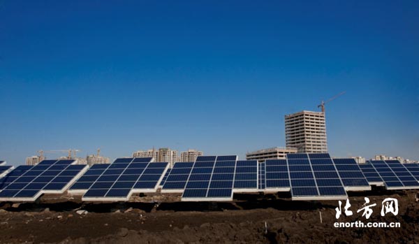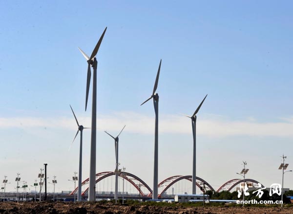 生態(tài)城建成和在建的可再生能源設施投資約8億元,共分為太陽能發(fā)電、風電、風電互補路燈、水源熱泵、深層地熱、土壤源熱泵、太陽能熱水等七類,總計提供電能約1900萬千瓦/年和熱能約44.6萬GJ/年,折合成標煤為22818.6噸。其中,薊運河河口風電和服務中心停車場光伏項目并網(wǎng)發(fā)電6個月以來,已經(jīng)發(fā)電180余萬度。