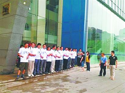 中國(guó)普天集團(tuán)總部位于北京市海淀區(qū),6月下旬總部門(mén)口忽然來(lái)了十幾位上身著白T恤的男子,并打著“體鉛超標(biāo),還我健康”的橫幅,要求與集團(tuán)總裁見(jiàn)面。