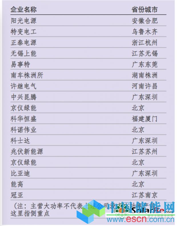 表三:主營(yíng)業(yè)務(wù)為大功率集中型的主流逆變器公司,列表不分排名,PV-Tech整理