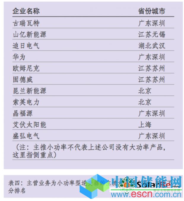 表四:主營(yíng)業(yè)務(wù)為小功率型逆變器的主流逆變器公司,列表不分排名,PV-Tech整理
