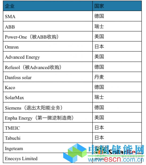 表二:國際主流知名逆變器公司一覽,列表不分排名
