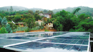從富民縣城出發(fā),沿著曲折的山路,大約行駛50多公里,來到位于富民縣赤鷲鎮(zhèn)轄區(qū)內(nèi)的一個人口僅有408人的小山村——普黑泥村。汽車行駛至普黑泥村委會辦公地點,一抬頭,一幢2層樓的小房子頂上,鋪滿了太陽能發(fā)電板。這便是富民縣的首個太陽能光伏提水工程。