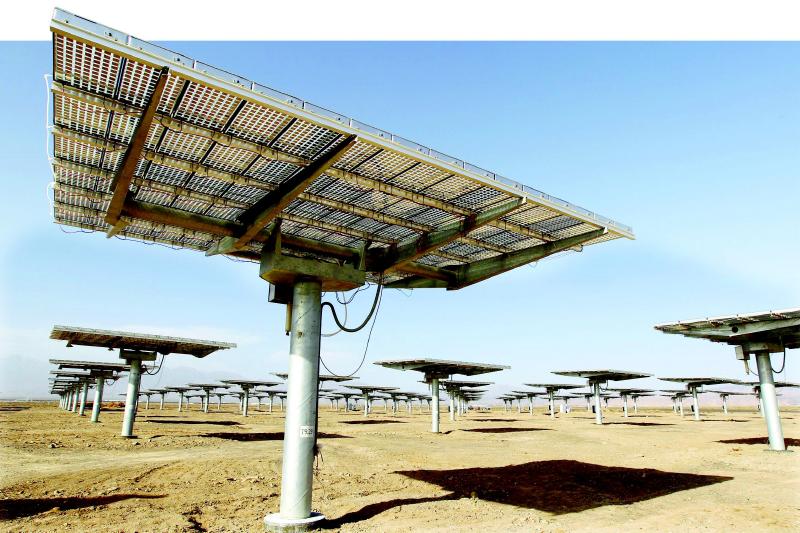 中國儲(chǔ)能網(wǎng)訊:總投資3.3億元的哈密弗光太陽能光伏發(fā)電項(xiàng)目中的新疆首個(gè)高聚光太陽能電站光伏發(fā)電演示支架日前并網(wǎng)發(fā)電經(jīng)試運(yùn)行,,發(fā)電效率和發(fā)電穩(wěn)定性均達(dá)到了預(yù)期效果率和發(fā)電穩(wěn)定性均達(dá)到了預(yù)期效果。。左圖為4月10日,哈密石城子光伏園區(qū)弗光太陽能電站已安裝完成的光伏太陽能發(fā)電支架工人在調(diào)試太陽跟蹤器。