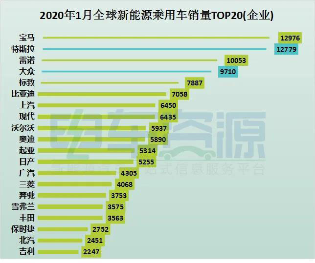 具體來看,2020年1月全球銷量冠軍由寶馬摘得,1月寶馬共銷售12976輛,同比增長128%;而此前長期占領(lǐng)第一的特斯拉,1月份以197輛之差,跌落至第二名;排名第三的是法國車企雷諾,其在1月銷量達(dá)到了10053輛,銷量首次上萬,增幅也達(dá)到了144%;大眾1月以9710的銷量位列第四,與其同屬一個集團(tuán)的奧迪和保時捷分別排名第10和第18,銷量分別為5890輛和2752輛。
