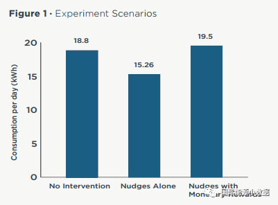 研究結(jié)果發(fā)現(xiàn),對(duì)比組居民用戶的用電量平均每天為18.8度,而第一組的居民用戶平均耗電量為15.26度,耗電量下降了18.8%。令研究人員深感意外的是,節(jié)能可以得到現(xiàn)金鼓勵(lì)的第二組居民的耗電量不但沒(méi)有下降反而上升3.7%,平均每天耗電量達(dá)到19.5度。