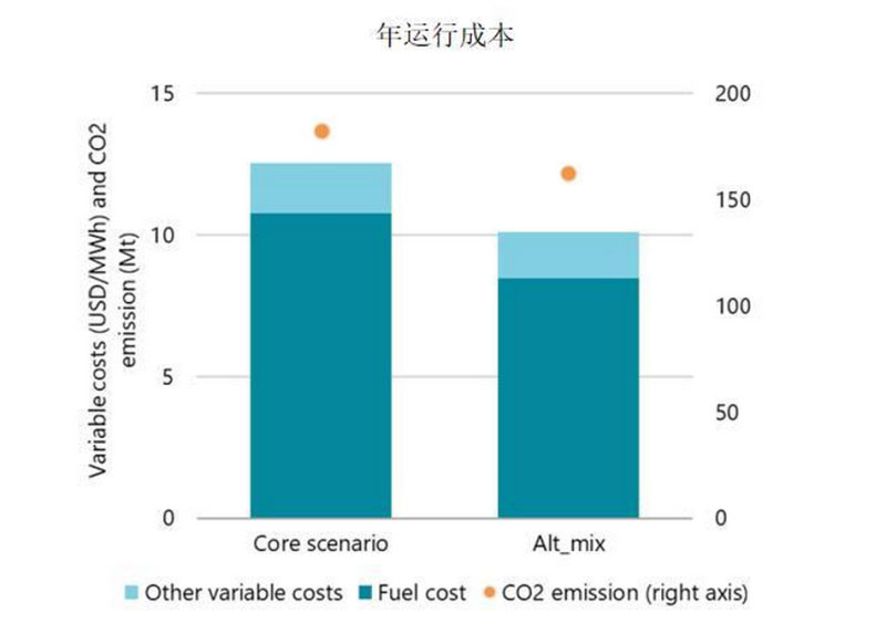 不同區(qū)域優(yōu)化電源組合也將進一步減少成本和二氧化碳排放。西北部地區(qū)(緬甸)豐富的潛在水資源既足以滿足本國電力需求,還能通過跨境互聯(lián)出口到東盟其他國家,為東盟帶來經(jīng)濟和環(huán)境效益。