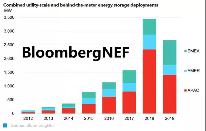 全球儲能市場年度新增規(guī)模自2012年以來出現(xiàn)首次縮減:韓國市場因火災事故頻發(fā)而暫時一蹶不振;受到監(jiān)管法規(guī)不允許電網(wǎng)儲能資產(chǎn)計入輸配電價的影響,中國市場的增速也有所下降;歐洲雖然收緊了長期脫碳目標,儲能增長短期內(nèi)仍難以實現(xiàn);美國市場2019年也出現(xiàn)增長停滯,但是監(jiān)管法規(guī)調(diào)整以及公用事業(yè)的光儲采購需求,仍將助推儲能市場在近期內(nèi)復興。盡管挑戰(zhàn)不斷,BNEF預計儲能市場很快將會恢復增長態(tài)勢,原因有二:項目儲備充裕,且電力系統(tǒng)靈活性要求不斷提高。