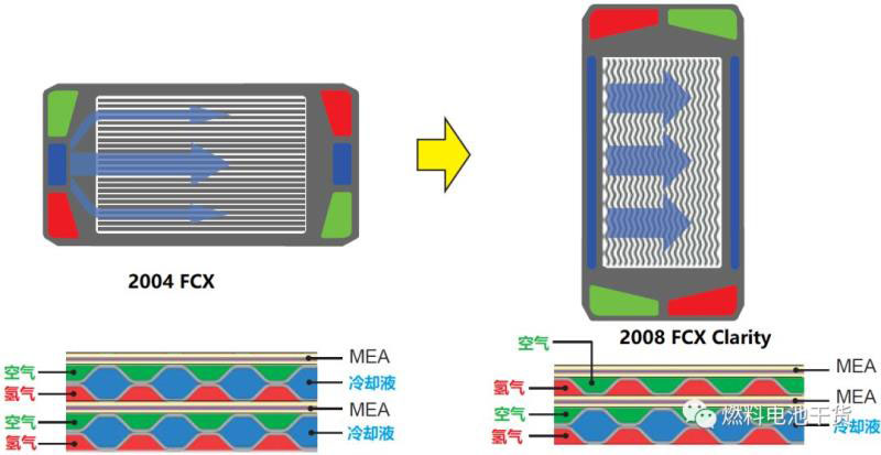 本田2008款FCX Clarity電池流道垂直流動(dòng)結(jié)構(gòu)