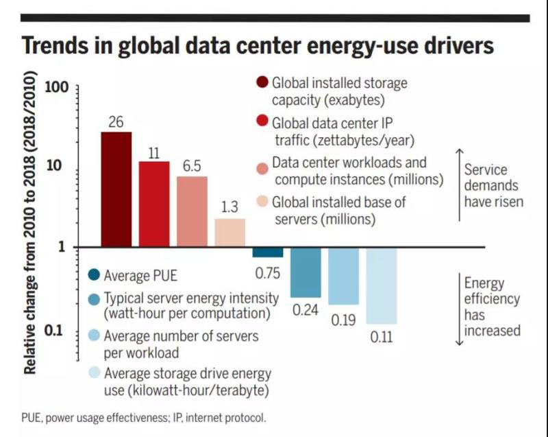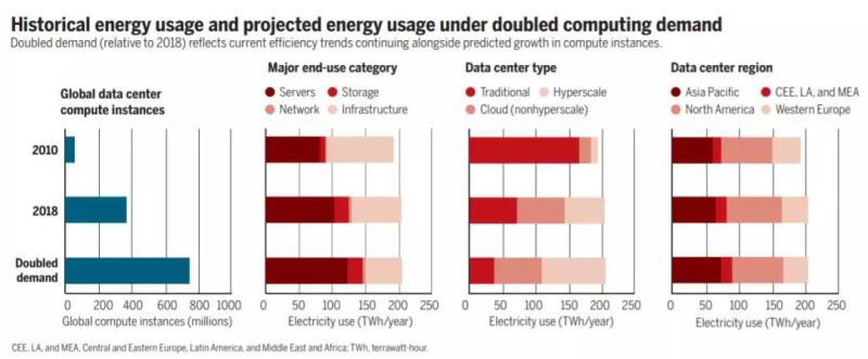 全球數(shù)據(jù)中心能耗趨勢(來源:Science)