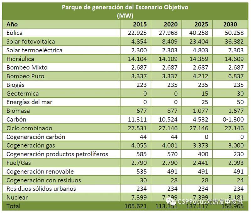 可喜的是,西班牙于去年發(fā)布了最新的國家能源和氣候綜合計劃(PNEC),到2030年可再生能源提供電力將占整體電力供應(yīng)的74%。根據(jù)公開征求意見的提案草案,西班牙計劃到2030年將其風(fēng)電裝機(jī)從2015年的22.9GW增加到50.5GW,并將光伏發(fā)電容量從4.9GW增加到36.9GW。同時并希望重新啟動光熱電站的大規(guī)模部署,計劃到2025年西班牙光熱電站總裝機(jī)規(guī)模將達(dá)到4.8GW,到2030年將達(dá)到7.3GW。