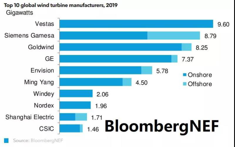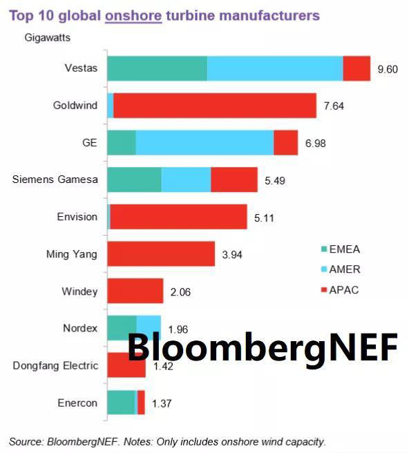 除此之外,明陽智慧能源,運達風(fēng)電,Nordex,東方電氣,Enercon分別位列全球第六至第十。