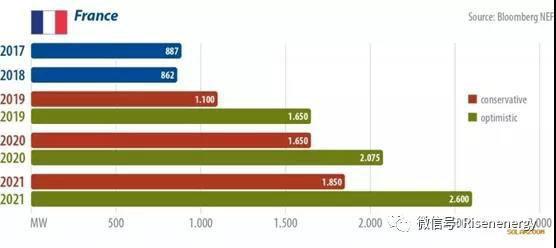 總的來說,法國2020年光伏新增量大概率超過去年,在未來幾年也會(huì)平穩(wěn)增長。幾大行業(yè)機(jī)構(gòu)對(duì)法國未來幾年的發(fā)展也都持樂觀態(tài)度。彭博新能源財(cái)經(jīng)有預(yù)計(jì),2020年,法國將新增光伏裝機(jī)量1.5GW,SolarPower Europe預(yù)計(jì)法國未來四年仍是歐洲第四大光伏市場(chǎng),預(yù)計(jì)到2023年的裝機(jī)量達(dá)到19.1GW,Wood Mackenzie預(yù)計(jì),法國安裝量將會(huì)與意大利、西班牙保持一致,三個(gè)國家到2024年的累計(jì)裝機(jī)量將達(dá)到25-31GW。