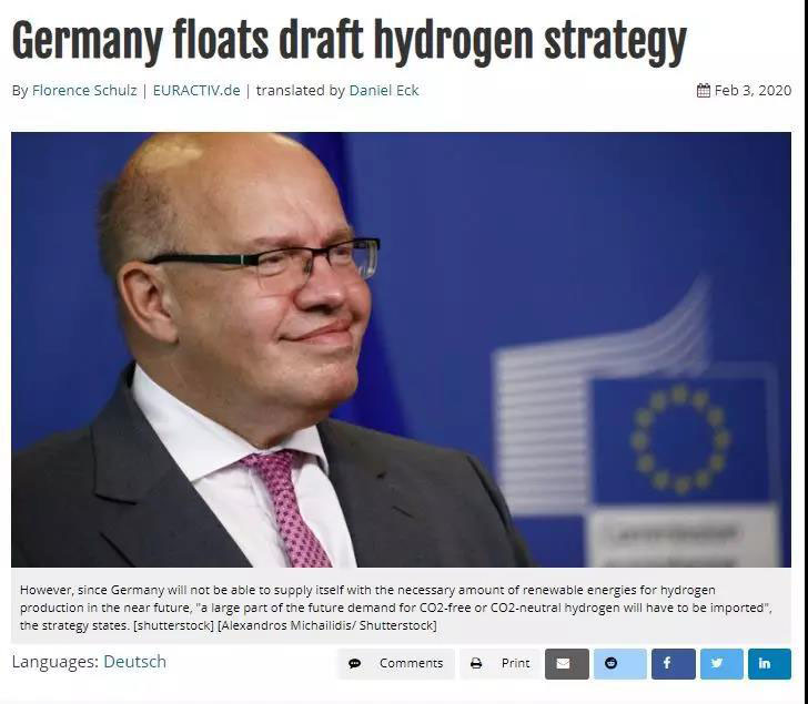 德國經(jīng)濟(jì)部長彼得·阿爾特邁爾(Peter Altmaier)主導(dǎo)制定的國家氫戰(zhàn)略草案已經(jīng)送交德國多個(gè)部委征求意見,力爭到2030年德國至少20%的氫將由可再生能源生產(chǎn),即所謂的綠色氫。