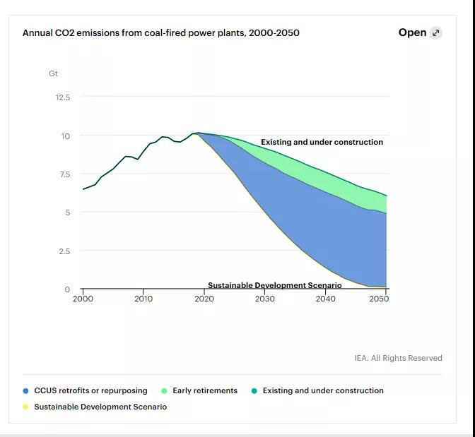 如何減少現(xiàn)有煤電廠的排放?我們考慮三種選項:1)用碳捕獲、利用和儲存(CCU)或生物質(zhì)共燒技術來改造它們;2)讓煤電廠專注于提供系統(tǒng)的足夠性和靈活性,同時減少發(fā)電運營時間:3)或者提前退役。在可持續(xù)發(fā)展的情景分析下,現(xiàn)有的2080 GW燃煤fadw容量中的大部分將受到上述三個選項中的一個的影響。