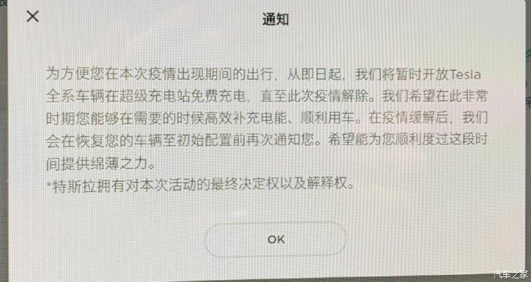 日前,特斯拉已向國內車主推送通知,為方便車主疫情期間的出行,在需要時高效順利補能,即日起暫時開放了全系車輛超充免費服務,直至疫情解除。