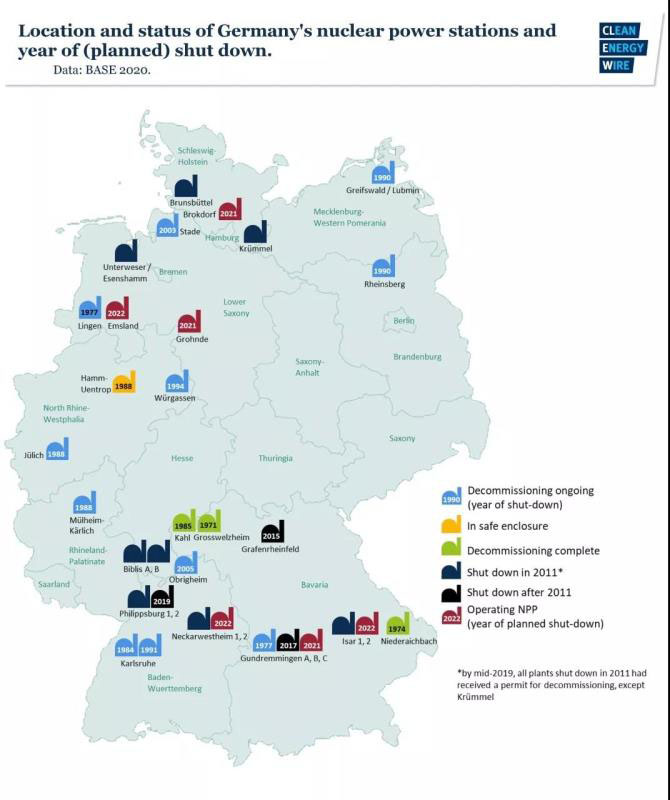 按2011年修訂的德國《原子能法》的要求,德國EnBW公司的菲利普斯堡核電站2號機組(KKP 2號)2019年12月31日下午6:55正式停運,EnBW預計拆除KKP 2大約需要10至15年。